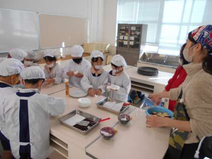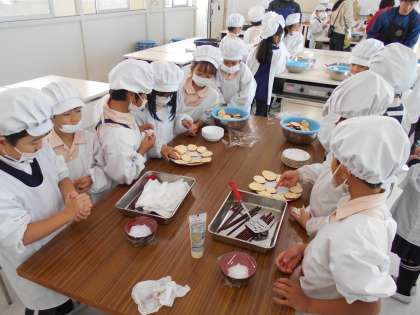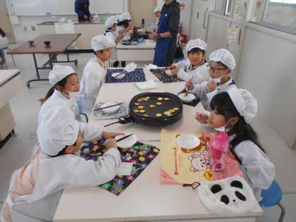 初めての家庭科室にドキドキでした。ホットプレートで火傷しないように気をつけながらさつまいもを焼いていきました。