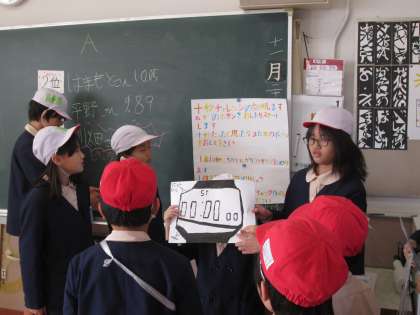 次は、ストップウォッチの数字を、10秒で止められるかな?【10秒チャレンジ】の班を紹介します。