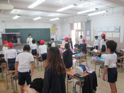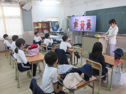 発育測定の前に、教室で「いいタッチ、わるいタッチ」という絵本の読み聞かせと、保健室の先生からのお話がありました。