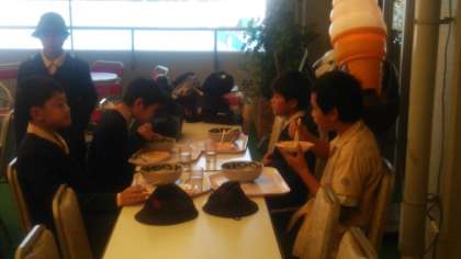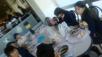集合時間を考えて、昼食をとるグループが多いです。朝からたくさん歩いて、