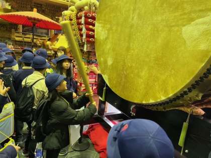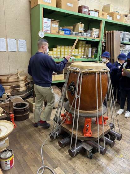 太鼓の製造工程など細かい作業を丁寧に教えていただきました。