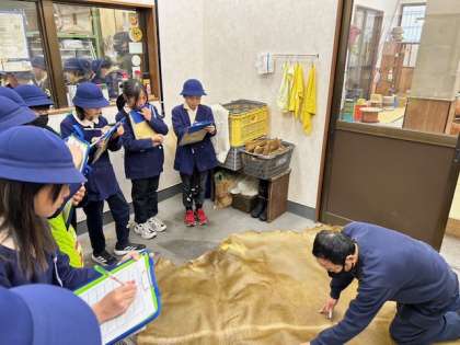 太鼓づくりとして栄えた大阪市浪速区にある太鼓正に社会見学に行きました。