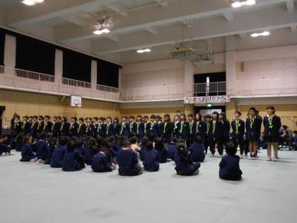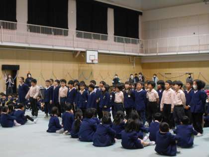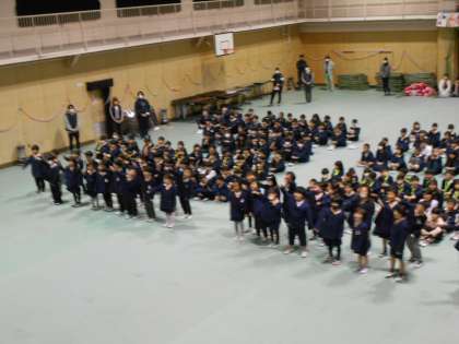 1〜3年生からの6年生へのお祝いの出し物の様子です。
