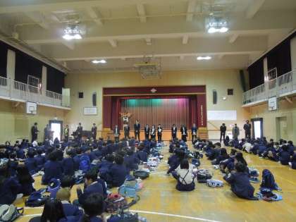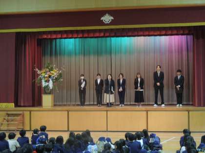 着任した教職員に児童は、大きなあいさつで応えていました。