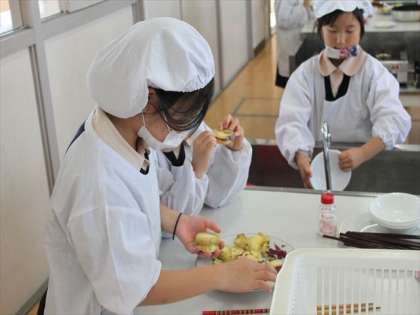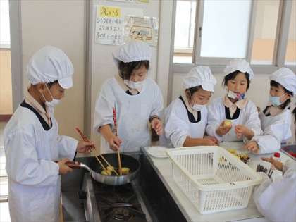 2年生が、先日西成公園で収穫したさつまいもを使って、おいもパーティーをしました。ゆでたさつまいもをバターなどで調理して味付けをしました。