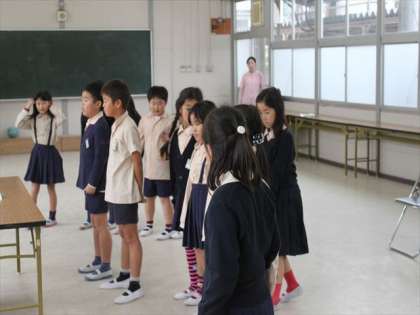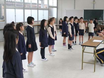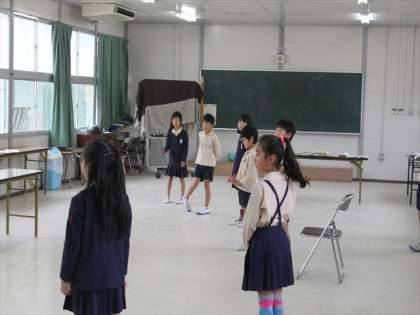 3年生がプレハブ教室で学習発表会の練習をしています。「王様の命令」という劇です。