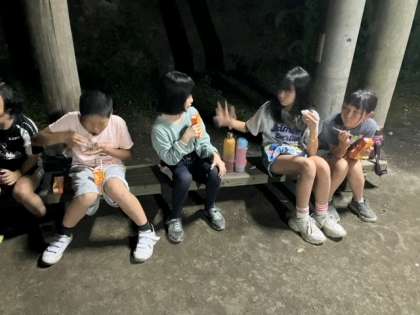少しお腹がへったかな? おにぎりとジュースでお夜食タイムです。