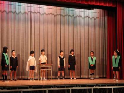 3年生の劇「王様の命令」です。セリフも大きな声で、ふりをつけ、子ども、王子、大人がわかる工夫もしています。まだまだスムーズにいかない部分もありますが、練習の成果は、十分に出てきました。