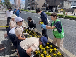 その後、学校の校舎の前のところにマリーゴールドの花を植えました。