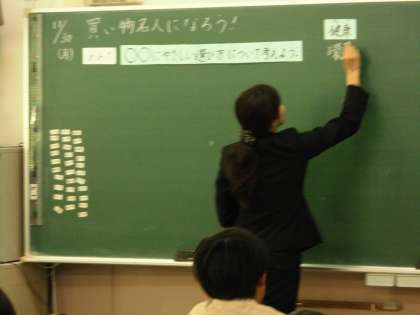11月30日に大阪市教育研究会家庭科部の授業研究会が梅南津守小学校の6−1でありました。「買い物名人になろう!」というタイトルで上手な買い物について、学習しました。