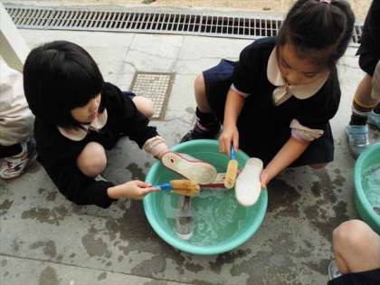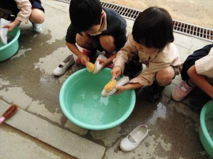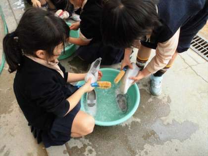 12月14日 1-1が生活科でうわぐつを洗いました。