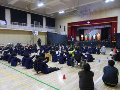 2・3時間目に芸術鑑賞会が講堂で行われました。
