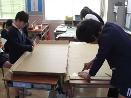 写真上下(まぐろ・いせえび班 もぐらたたき)かなり苦労してモグラの穴をあけていました。