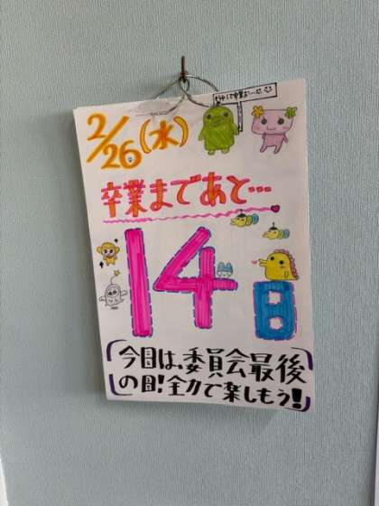 もう2月も終わります。6年生もとても寂しそうですが、残りわずかな小学校生活を大事に過ごしてもらいたいです。