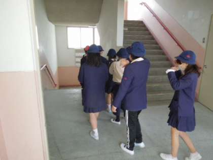 校内が発生した場合の避難経路の確認、避難の仕方を学びました。