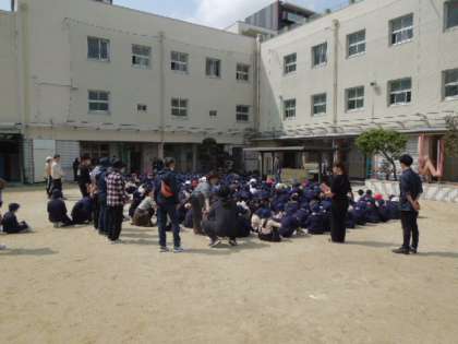 先生の指示に従って帽子をかぶりハンカチを口に当て、迅速に行動していました。