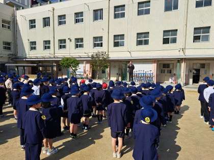 毎週月曜日は児童朝会があります。今回は初めての児童朝会でした。教室を出発するときから、きちんと並ぶことができ、児童朝会の間もしっかりと話を聞くことができました。