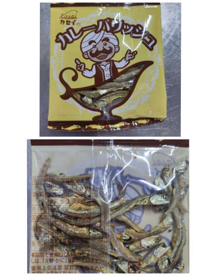 カレーフィッシュは、国産のかたくちいわしを食塩、砂糖、カレーの香辛料で味付けしています。