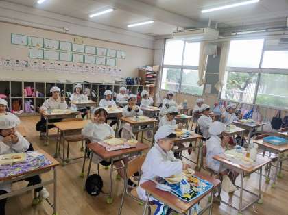 ミートソーススパゲッティは、牛ひき肉、豚ひき肉を使用し、小麦アレルギーがある児童も食べることができるように、上新粉でとろみをつけて仕上げています。