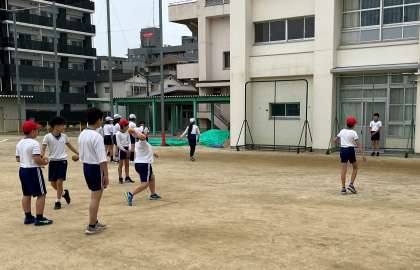 今日はソフトボール投げの練習をしました。ボール投げの得意な子に投げ方を教えてもらいながら、何度も投げました。スポーツテストに向けて頑張っています!