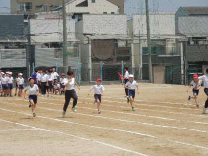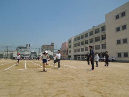梅南中学校の中学2年生と50m走合同計測会を行いました。