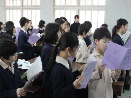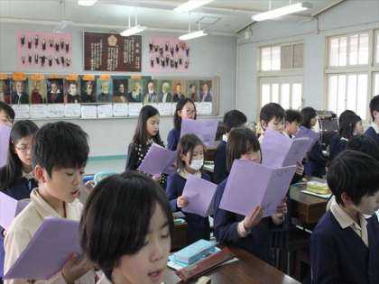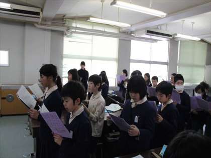 4−1が、音楽で「ふるさと」を学習していました。2部に分かれて歌うそうです。うまくハーモニーを響かせることができるでしょうか。