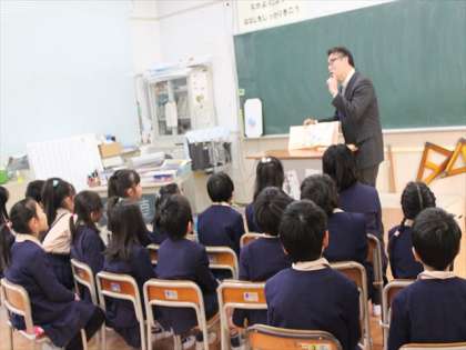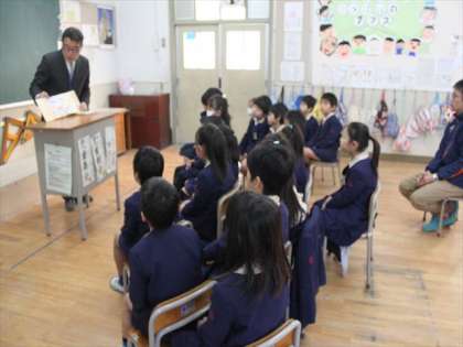 校長先生の読み聞かせは、先週の2−1に続いて2−2でした。「くれよんのくろくん」でした。カラフルな絵のにはいれないくろくん、どう絵に入れるかこまっているほかのくれよんたち、そのおりあいをつけるシャーペンのおにいさん。このおりあいをつける人や折り合いのアイデアの大切さが大事です。