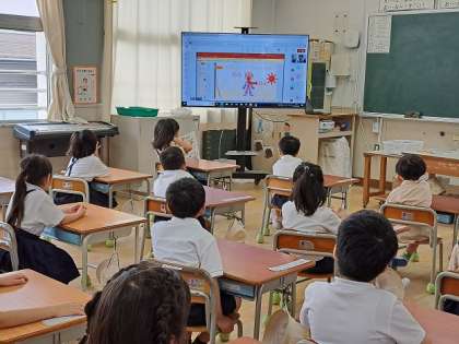 今週の児童朝会は各教室でTeamsをつないで行いました。