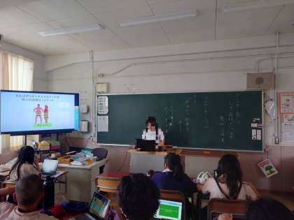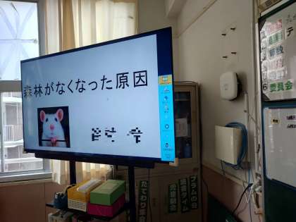 国語科「イースター島にはなぜ森林がないのか」筆者の考えを短い文でまとめ、さらに絵や写真を用いて分かりやすくプレゼンテーションしました。最後に、どうすうれば人類と自然が共存できたのか自分の考えも発表しています。