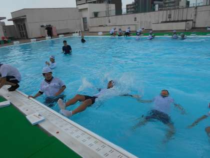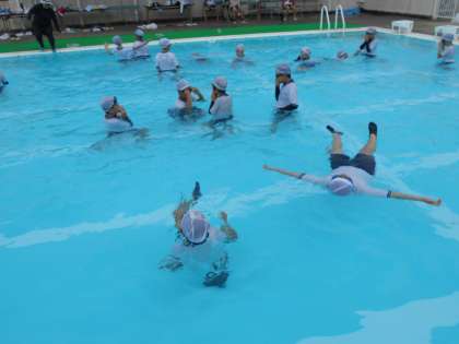 ゲスト講師に来ていただき、服を着ながら浮く方法を教えていただきました。