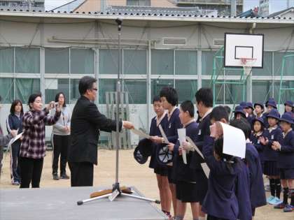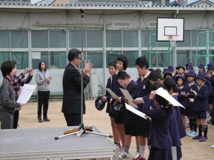 図工展に出品した児童の表彰がありました。風邪による学年や学級休業で表彰が延び延びになっていました。一生懸命に描いた作品がすてきでした。