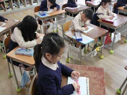 はじめて、たし算の筆算を学習しました。みんな「できた!」「かんたん!」と自信たっぷりの子どもたちでした。