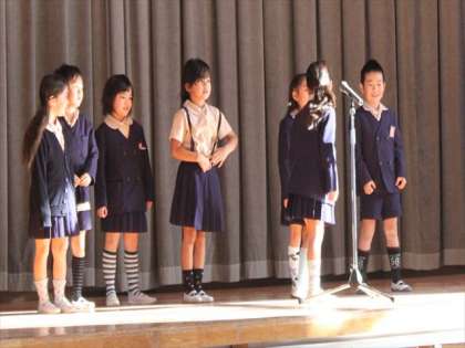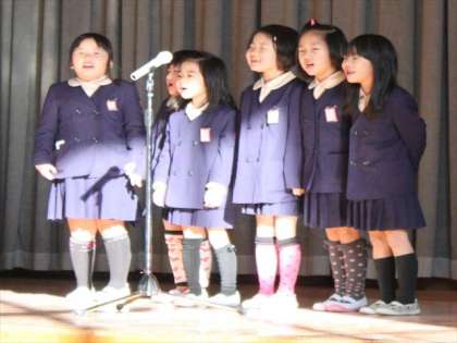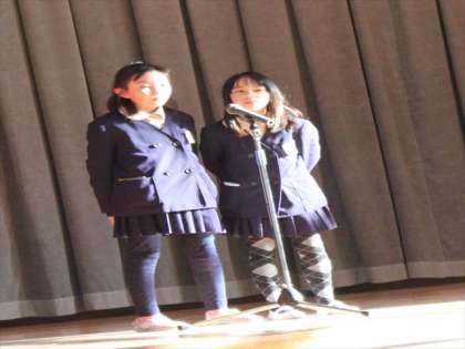 写真上(2−2 流星) ダンスはありませんでしたが・・・写真中(1−1 つばさ)写真下(1−2 レットイットゴー)写真でわかるように最初は、みんな緊張気味でしたが、手拍子もあり、笑いもあり、盛り上がりました。