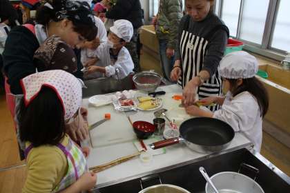 みんなでできあがったおにぎりと豚汁をおいしくいただきました。