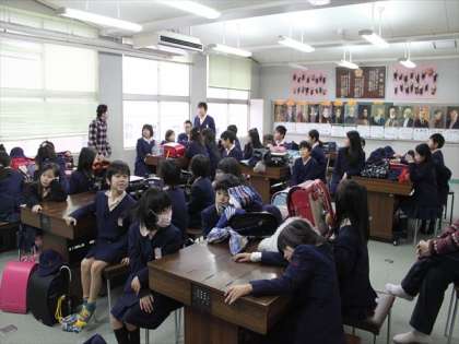 春休みの生活について話し合い、班ごとに集団下校をしました。災害などのとき集団下校はとても大切です。