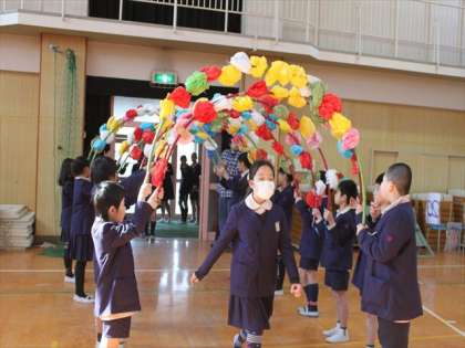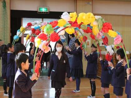 ばいつも子ども冬まつりと卒業おめでとう集会が開かれました。ばいつも子ども冬まつりは1月に実施する予定でしたが、6年生と1−2が学級休業で3月2日に延期になっていました。
