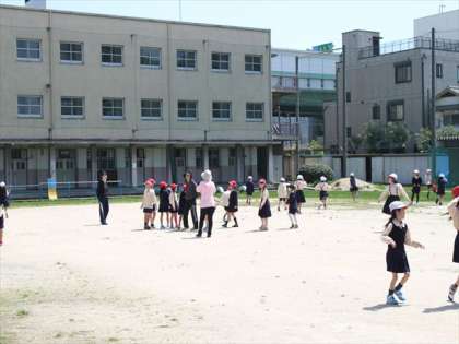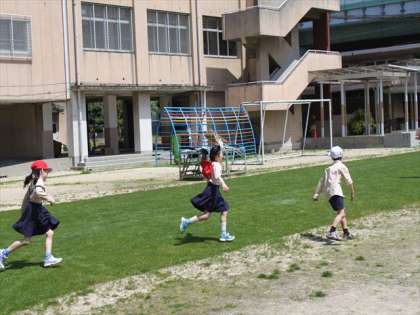 せっかくなので、しばらく遊びました。梅南津守小は、今工事中で遊具もない、運動場も狭いので、のびのびあそぶ時間をとりました。