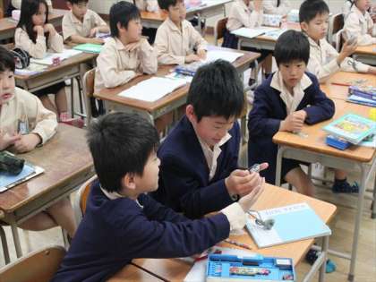 「1分よりみじかい時間のたんいを知ろう」という算数の学習をしました。コマーシャル、50m走などで子どもたちにもおなじみの」「秒」を学習しました。ストップウオッチも使い方を学びました。