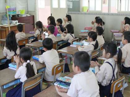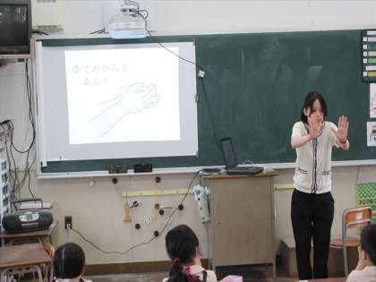 次に給食のときにおいしく安全に食べるためのやくそくについて学習しました。「手を良く洗う」の洗い方についてくわしく教えていただきました。栄養指導は6月まで全学年で各学年の実態に合った内容で実施します。