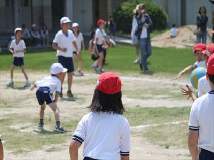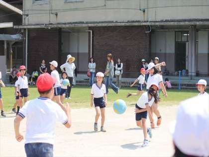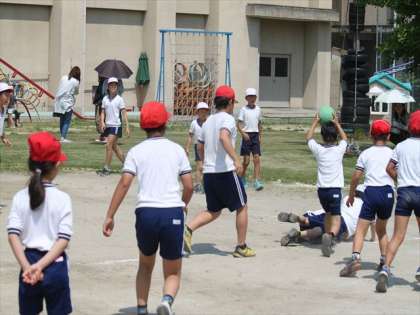 体格差や身体能力の差が1年と6年ではかなり違いがありうまく楽しんでくれるかどうかが課題でした。6年生がうまくリーダシップをとり、5年、4年がサポートしながら楽しんでくれたようです。ボールが複数個あり、いろいろなところから当てられるのも意外性があってよかったかもしれません。
