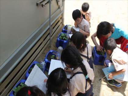毎日お水をあげて、世話をしているあさがおが大きくなる、育っていく子どもたちにとって、とっても良い体験です。