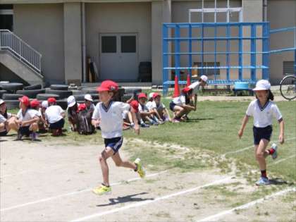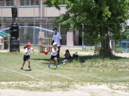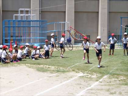 3年生が、旧津守小で50m走をしました。体を温めてから、ダッシュの練習をしました。結果はどうだったでしょうか?ゴール付近でスピードが緩くなる子は少なかったようです。