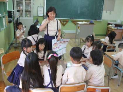 ばいつもこどもまつりが、明日開催されます。お客さんに楽しんでもらうために、見やすい工夫やわかりやすい工夫をしました。(写真は、もも、マスカットの「まめつかみ」です。