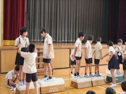 上体起こしは、1年23回、6年47回が最高記録でした。(写真上中)