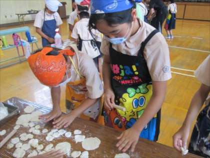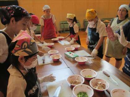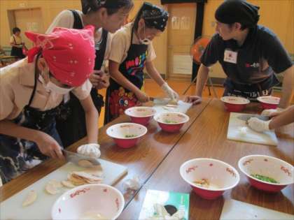 チャーシューを切る係、ぎょうざをつくる係それぞれ自分や友だちがおいしく食べることに責任があります。