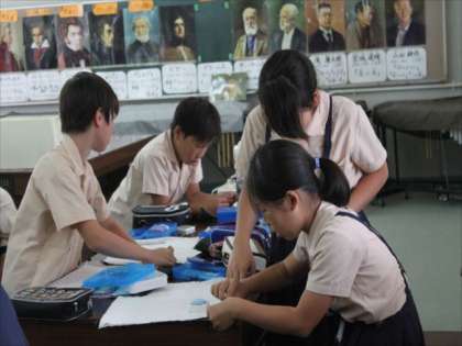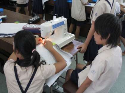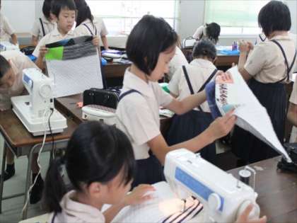 ミシンはまだ、使い始めで慣れていませんが、色々なところで助け合って学習している5年生でした。