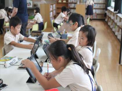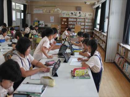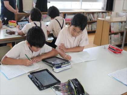 タブレットの使い方も少しずつ理解して、自分の調べたい情報を正確に調べ考えるようになってきました。熱心に学習する5年生でした。