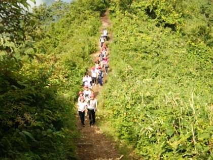 涼しいうちに出発したのですが、慣れない山道に苦労していました。でも、上から見る景色は疲れを癒してくれます。