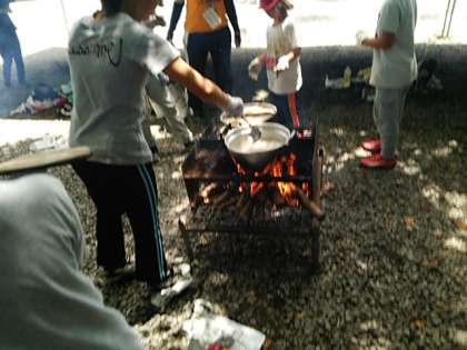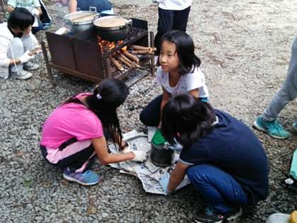 いよいよ最終段階です。ルーを入れる。飯ごうをさかさまにする。緊張の瞬間です。
