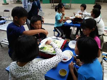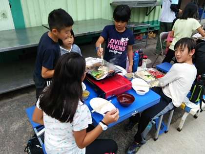 夕食は、屋外で焼き肉です。とても涼しいです。